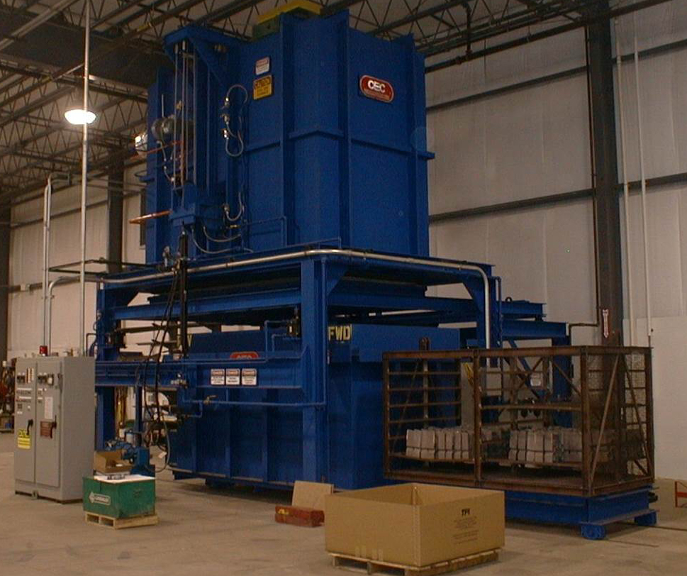 A T6 heat treatment is three steps. During the first step, the casting is heated at a very high temperature, 1,000°F (538⁰C) for 12 hours. The next step is quenching. The casting is lowered into a liquid solution bath resulting in rapid cooling. The solution bath is usually water or glycol at a temperature 150-214°F (66-100°C). After quench, the castings are aged in a furnace. They are heated to 310°F (154°C) for 3-5 hours and then allowed to cool naturally..
